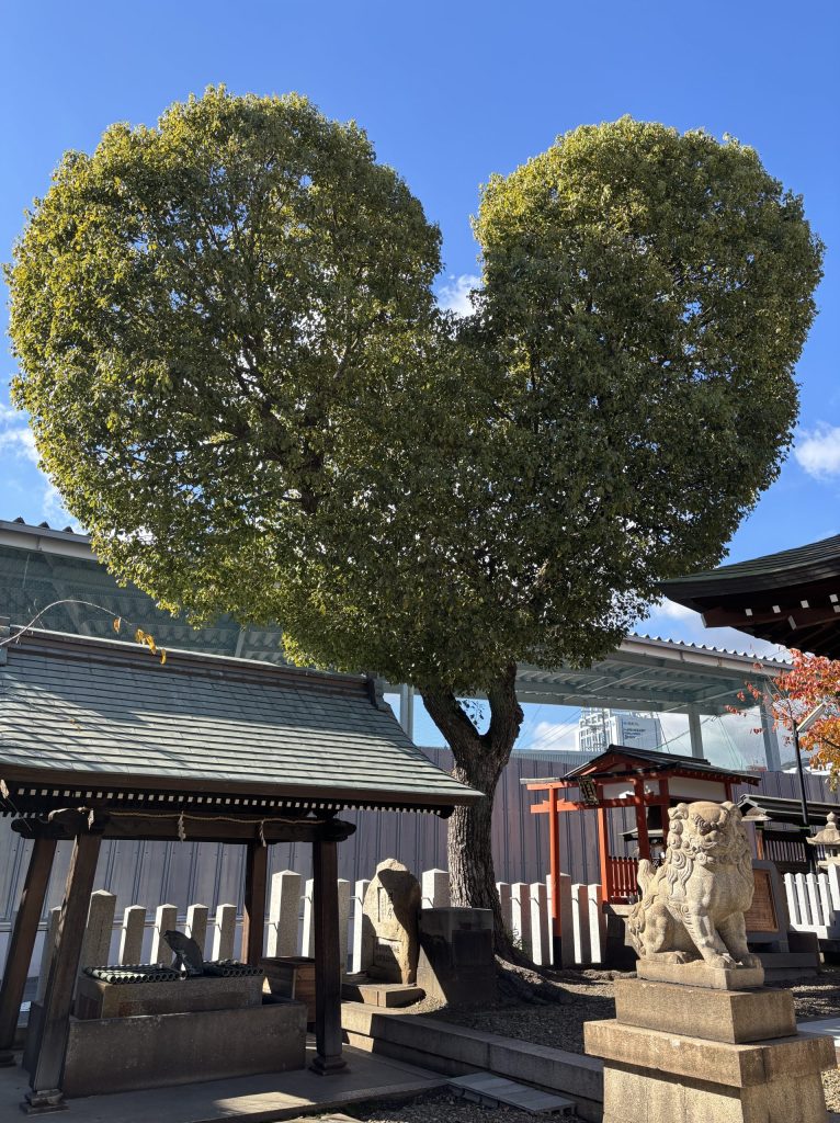 神社の様子 ハート型の木がお迎え!