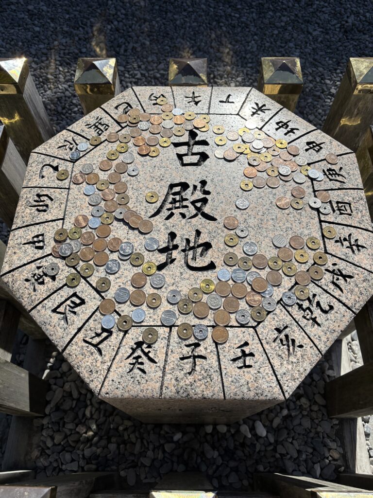以前御神座のあった特別な場所だそうで、踏まれないようにこの台を置いたということです。